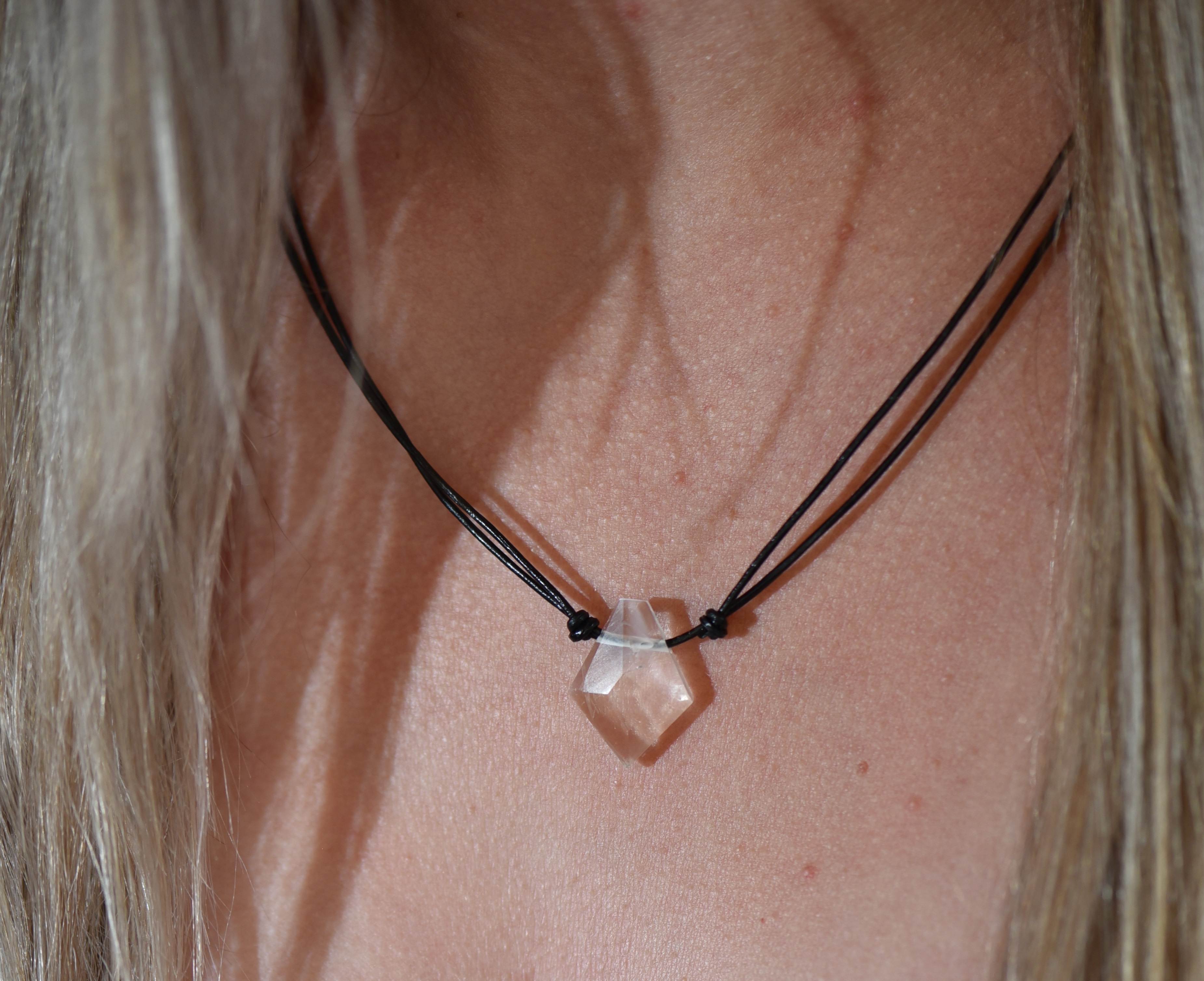 Eine Seltenheit aus dem Zillertal: Der Mondstein-Adular. Der Stein wurde beim Mörchnerkar gefunden. Der Anhänger ist an einem größenverstellbarem Lederband befestigt. Hinweis: die Bohrung des Anhängers ist extrem schmal - der Anhänger kann daher nur mit dem mitgeliefertem Lederband getragen werden.
