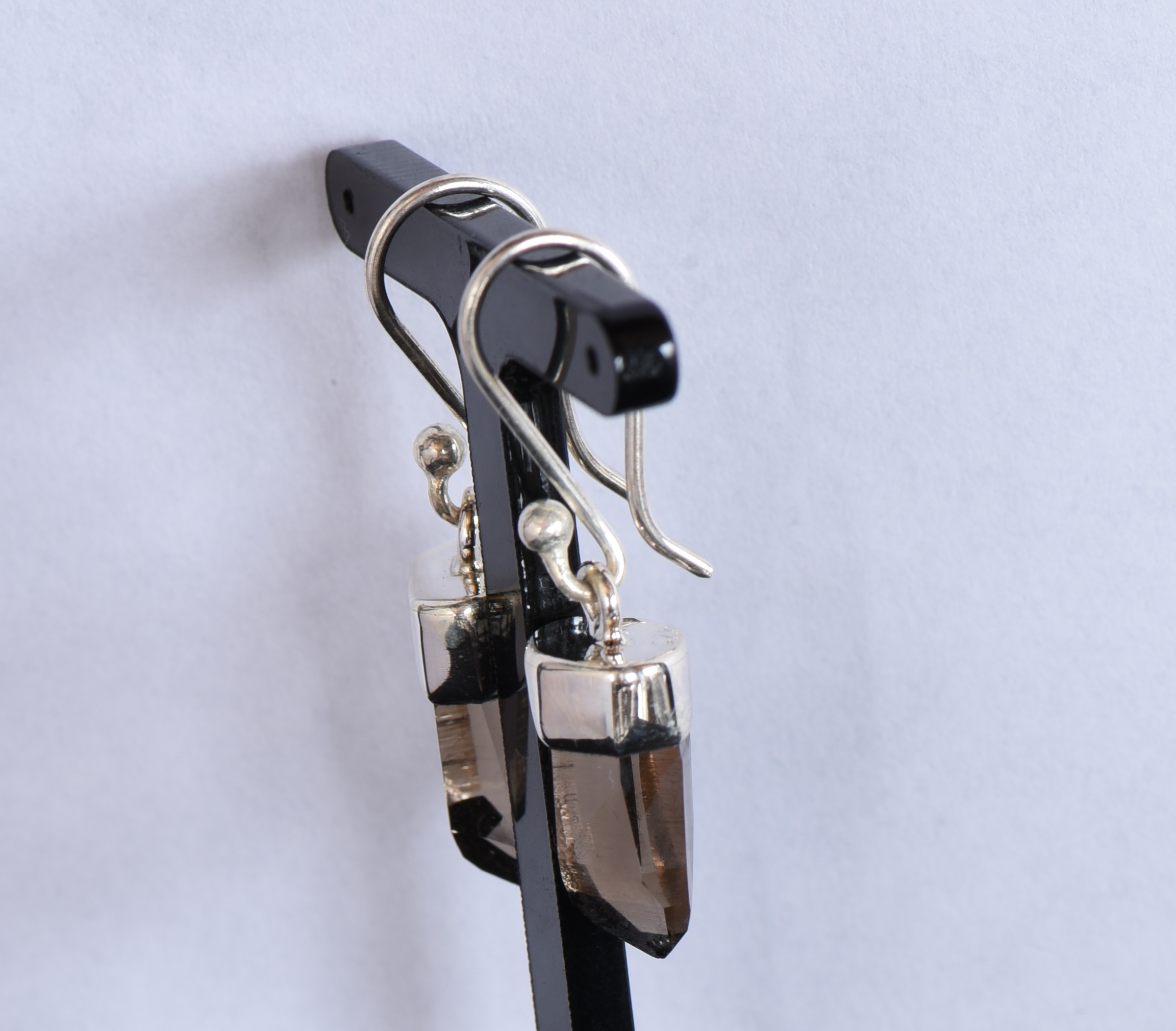 Rauchquarzohrhänger mit Silberkappe