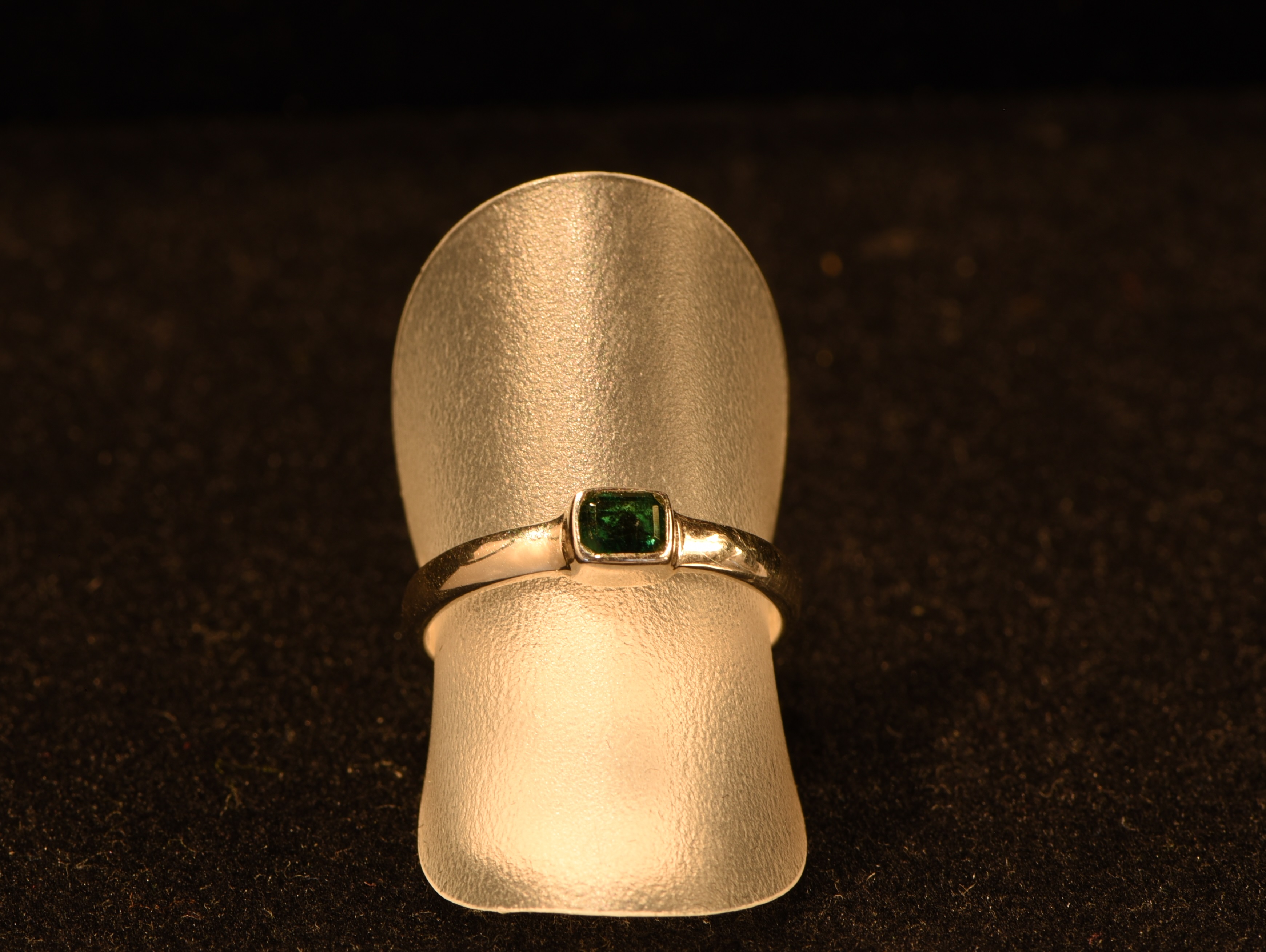 Ein 4 mm x 3 mm großer, facettierter Smaragd mit einer unglaublich schönen, dunkelgrünen Farbe wurde in einen Silberring eingefasst. Der Smaragd wurde im Smaragdbergbau im Habachtal (Bramberg, Salzburg, Österreich) gefunden.