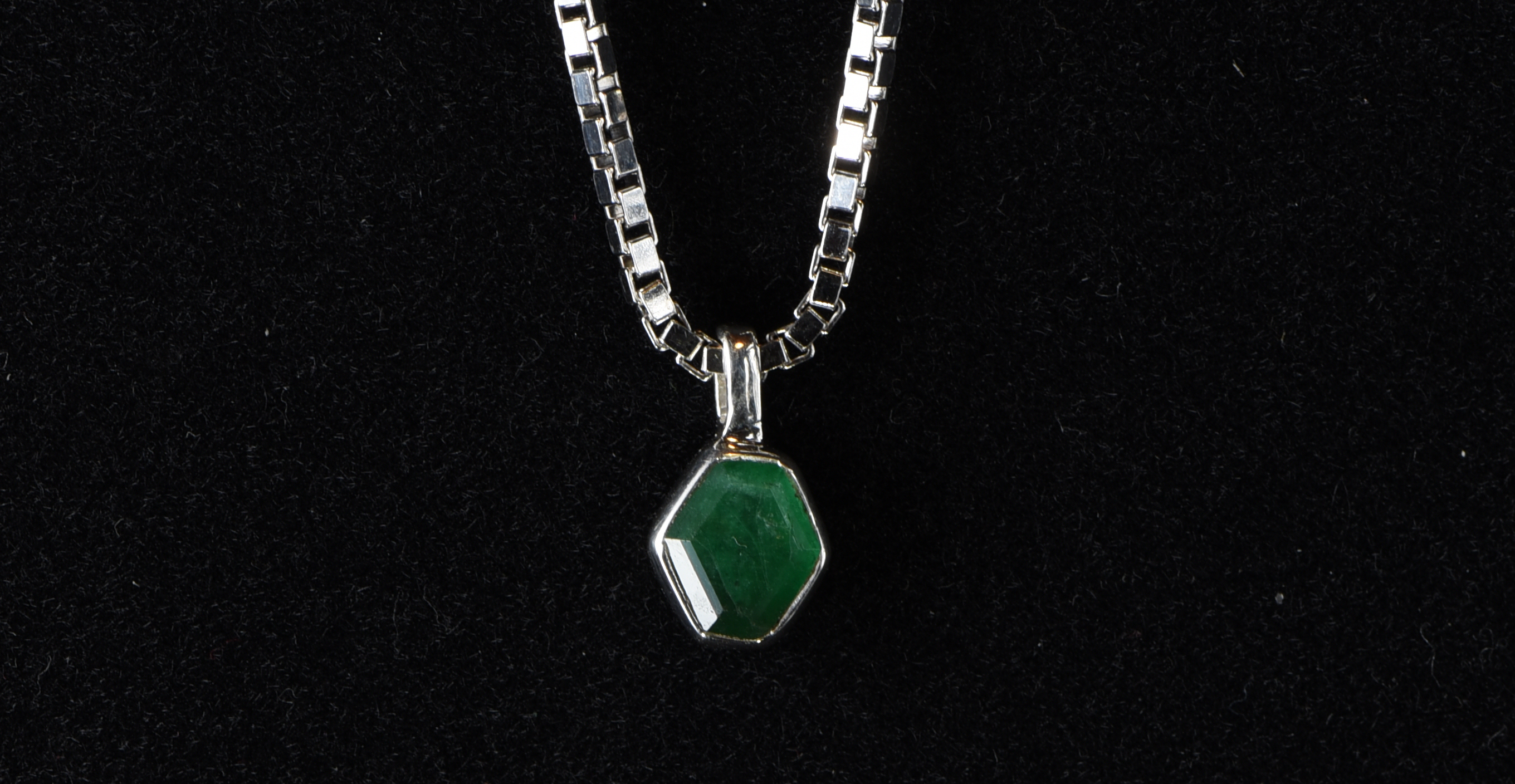 Der Smaragd hat eine Top-Qualität und ist an facettiert und in Silber eingefasst (Randfassung, hinten offen). Der Smaragd wurde im Smaragdbergbau im Habachtal (Bramberg, Salzburg, Österreich) gefunden.