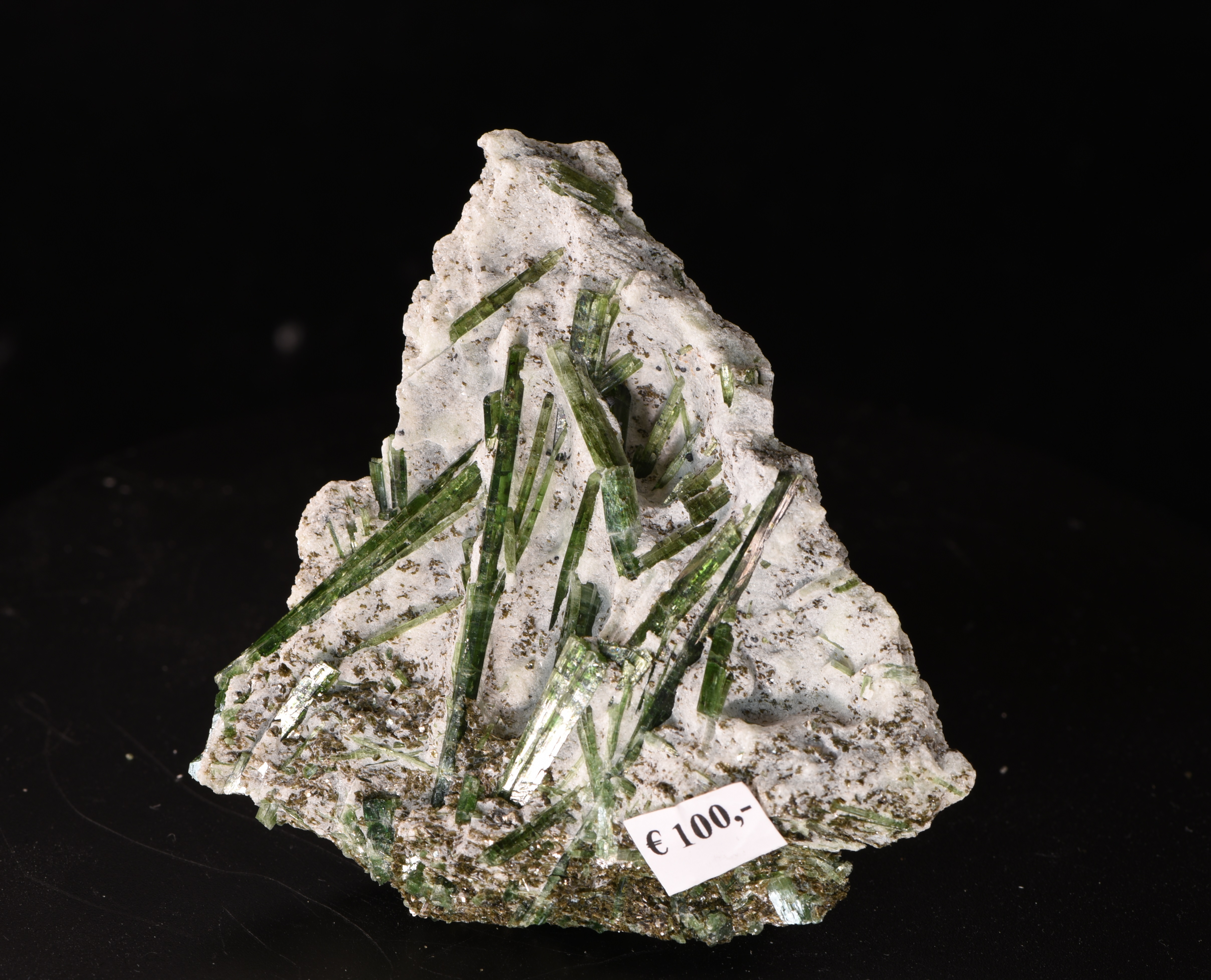 Auf dieser kleinen aber feinen Stufe sitzen unzählige Smaragdit-Nadeln mit TOP-Qualität. Die längste komplett freigelegte Nadel misst 4 cm.