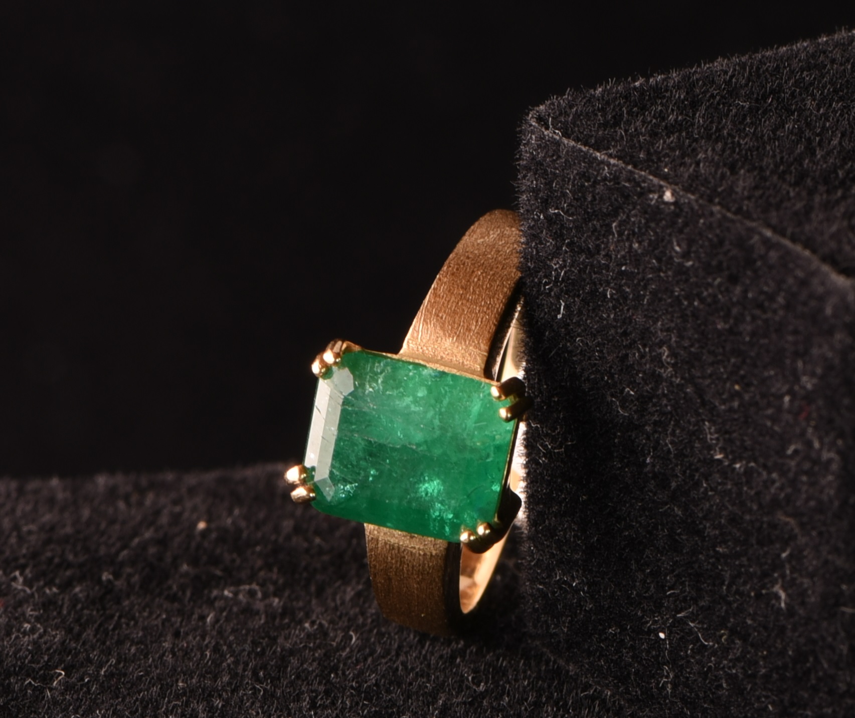 Ein facettierter, 9 mm x 7 mm großer Habachtal-Smaragd mit Top-Qualität wurde in einen 585-er Goldring eingefasst. Die Farbe und Klarheit ist atemberaubend. An einer Seite ist der Stein etwas einschlussreicher, was einen unglaublichen Effekt ergibt, wenn man den Stein dreht - ein atemberaubender Anblick. Der Goldring ist an der Außenseite gebürstet und der Smaragd ist durch 4 Krappen am Ring befestigt. Der Smaragd wurde im Smaragdbergbau im Habachtal (Bramberg, Salzburg, Österreich) gefunden.