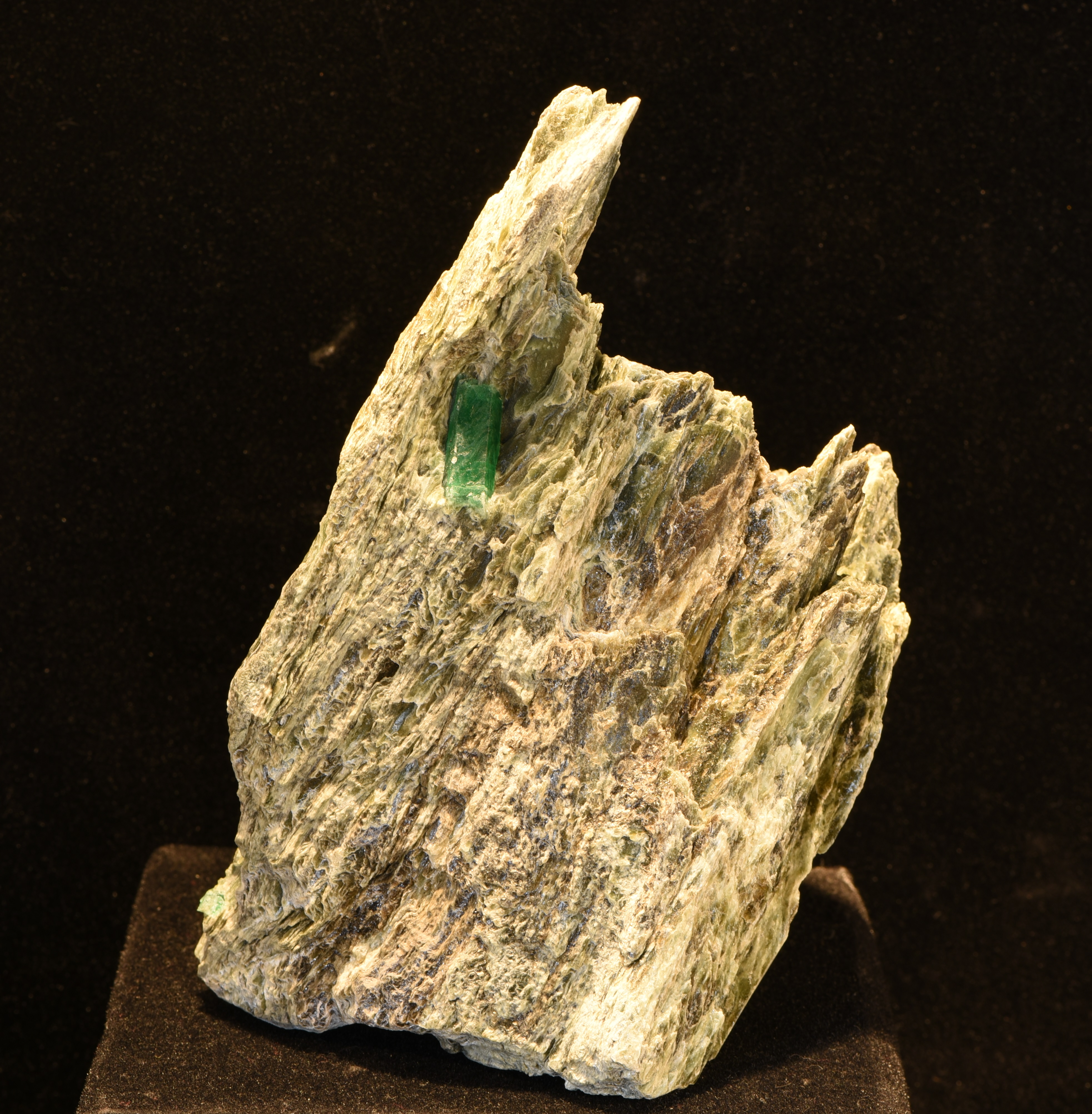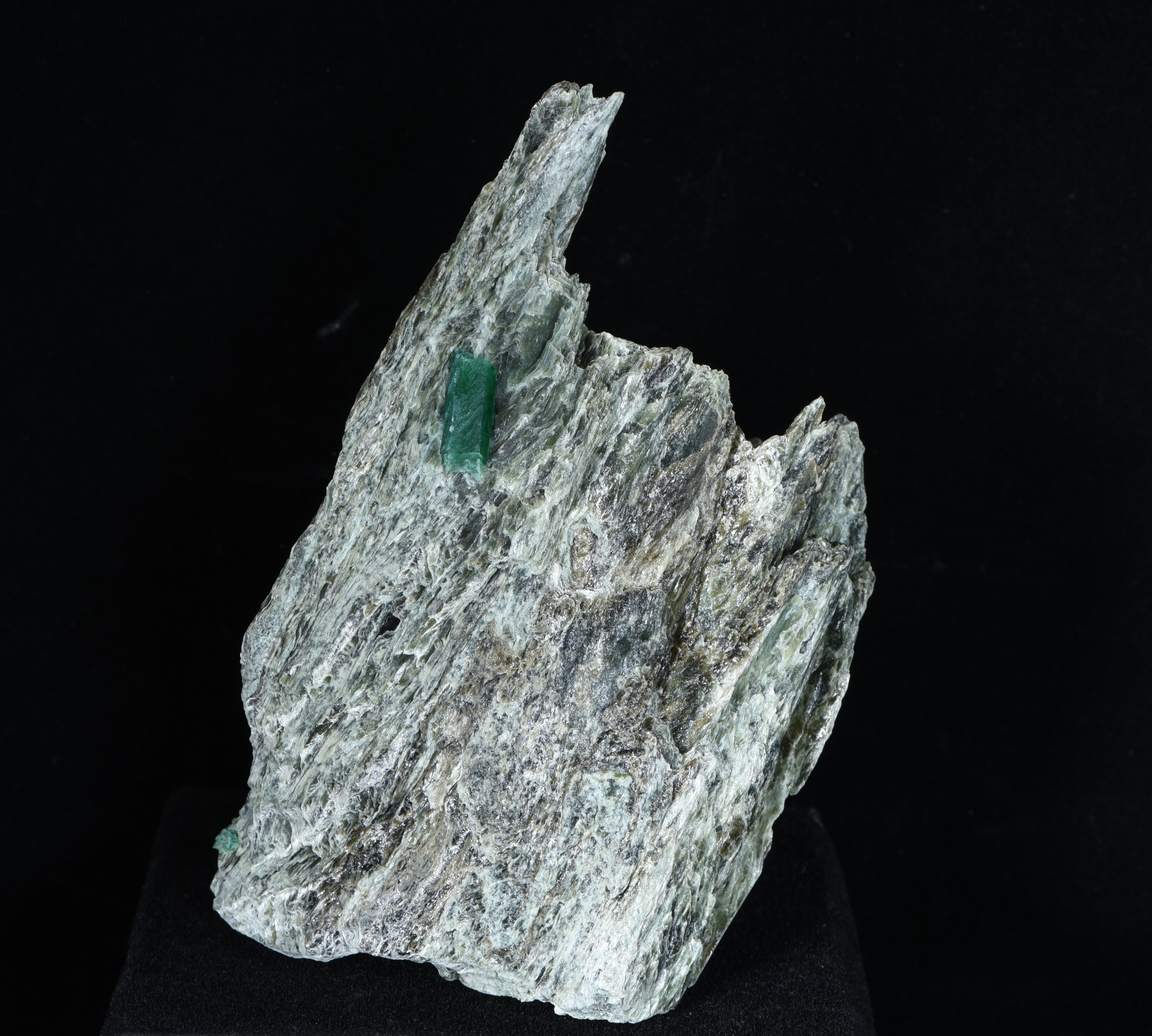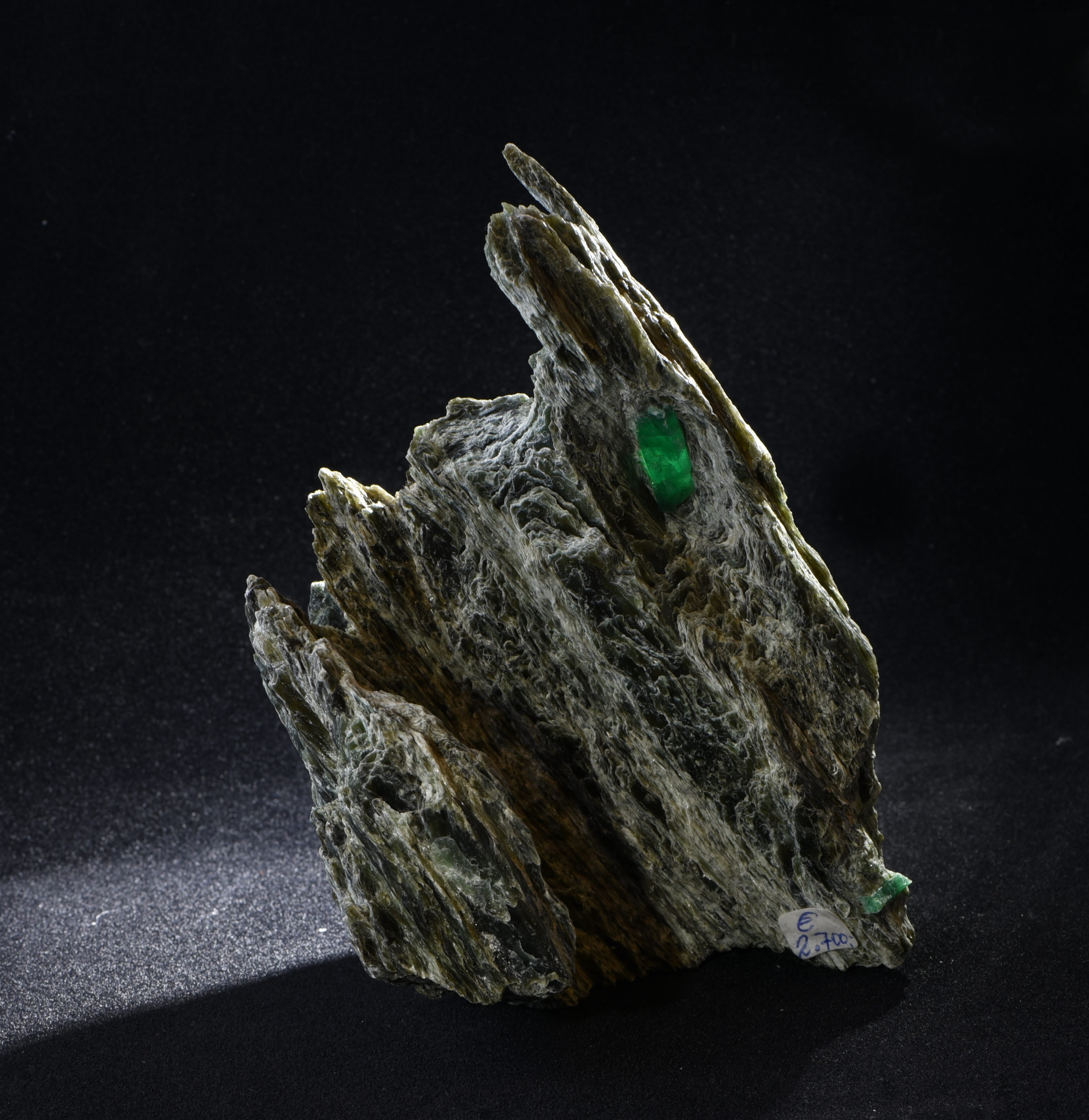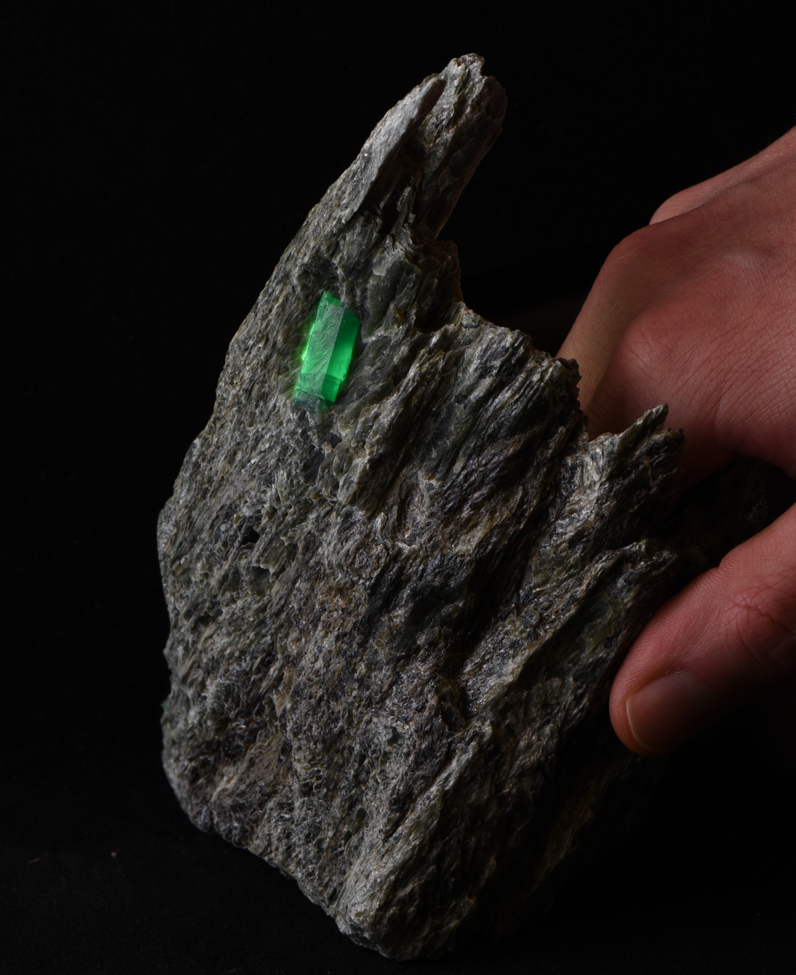 Der Smaragd auf dieser Stufe ist von beiden Seiten freigelegt und von hinten beleuchtet. Der Kristall hat eine sehr gute Qualität und Farbe und misst 1,7 cm.